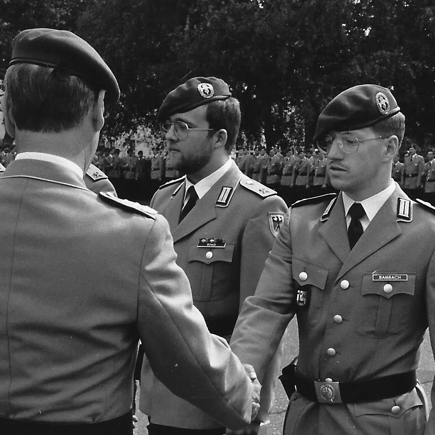 Heute wird wieder sehr aktiv über eine bedeutendere Rolle der Bundeswehr in unserer Gesellschaft diskutiert. In den 80er Jahren war dies nicht so viel anders. Nach meinem Abitur entschied ich mich, die Offizierslaufbahn bei der Bundeswehr einzuschlagen. In der Pioniertruppe in Koblenz durchlief ich verschiedene Ausbildungsabschnitte als Gruppen- und Zugführer und war am Ende der dreijährigen Offiziersausbildung verantwortlich für einen Pionierzug mit etwa 35 Soldaten.